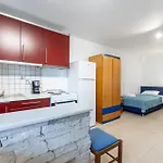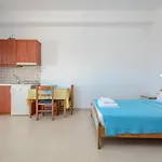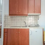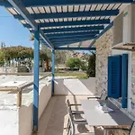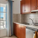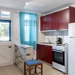 The self-catering facilities feature a kitchenette with an electric kettle, a refrigerator, and an oven. The nearest bus stop MIKRI VIGLIA is right near this apartment.